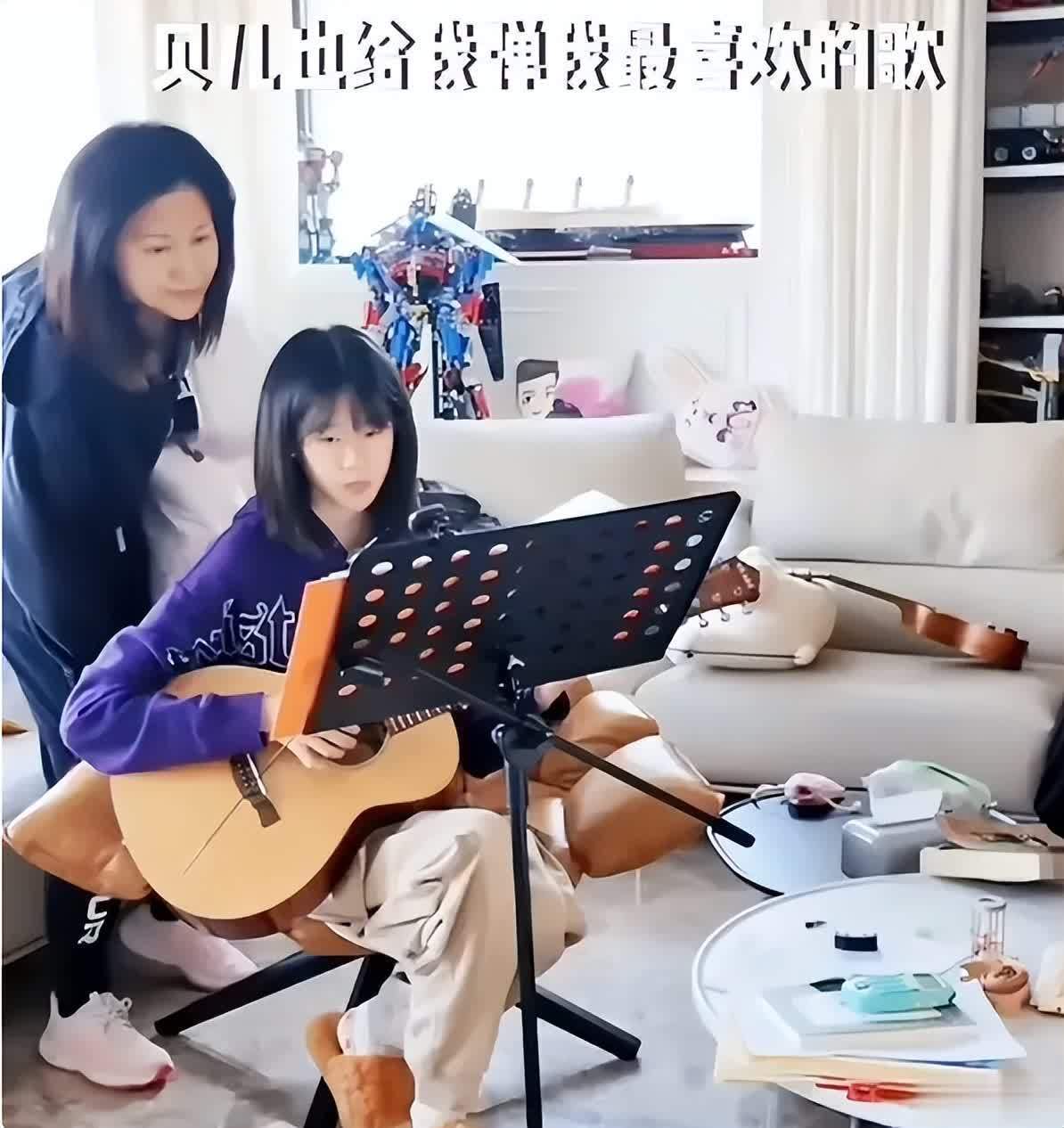 贝儿继承了父母的艺术细胞,喜欢唱歌,偶尔会分享自己的演唱片段,低调又有实力。